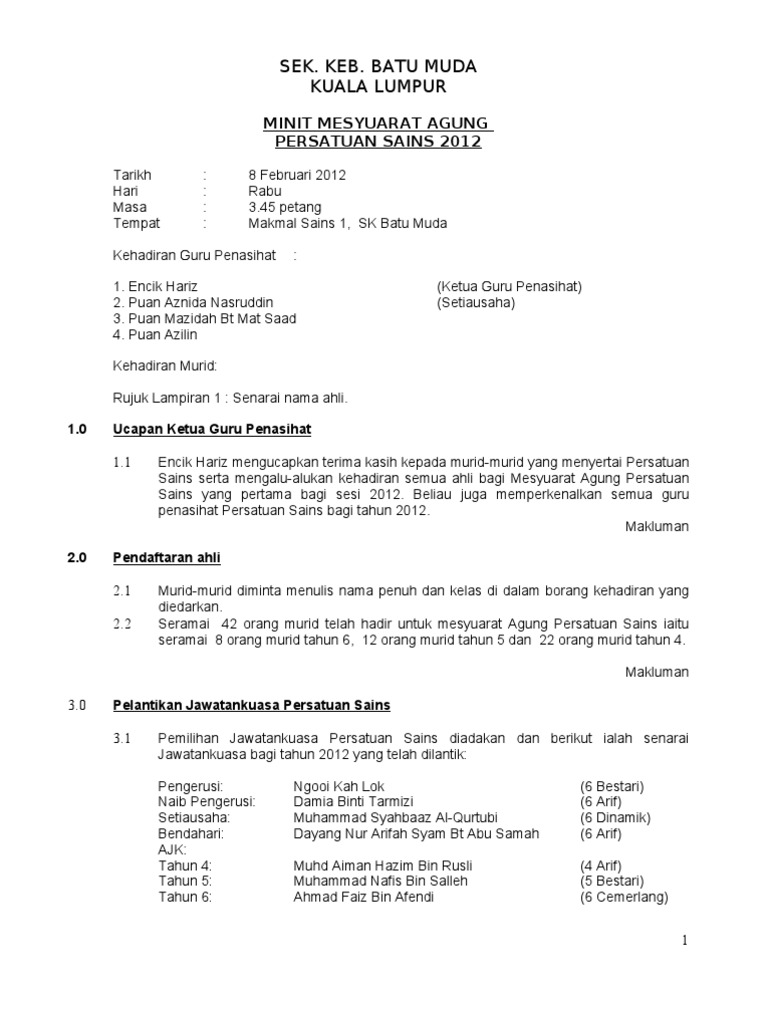 Minit Mesyuarat Agung Persatuan Pdf